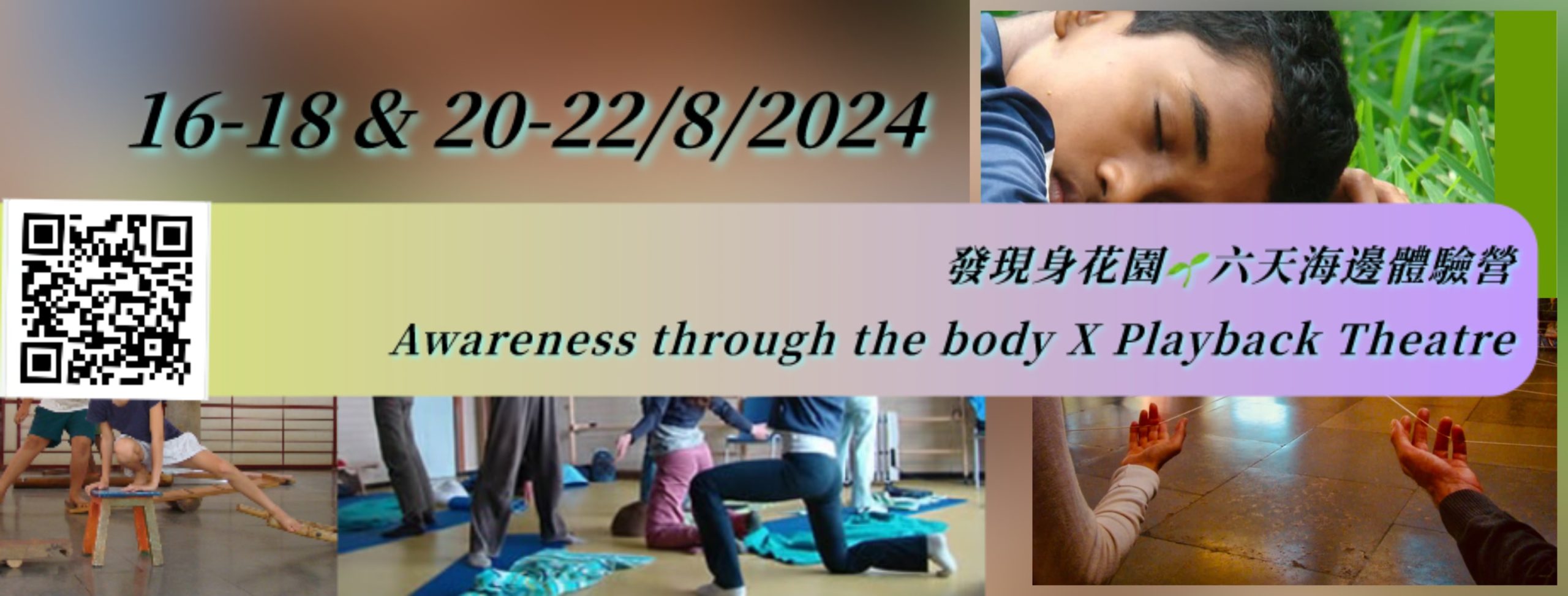 體驗東方養生理論、探索五感覺察,並融入一人一故事劇場(Playback Theater)的精髓。這是一個全新的表演者訓練體驗,讓您在遠離喧囂的學習環境中展開跨文化交流,並提升實踐與應用能力。