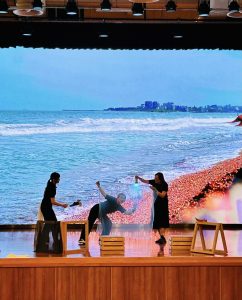 「我們與海的距離」演出結合一人一故事劇場及多媒體,以淨灘收集得來的海洋廢物作為引子,挑選當中合適的物料進行加工,創作出與眾不同的、獨一無二的戲偶——海廢偶,在劇場中藉由表演者的巧手和創思,融合形體、影像與音樂的演出,呈現獨特的劇場體驗。