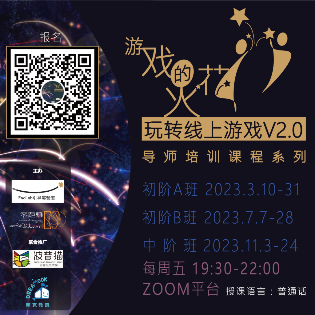 由引導實驗室FacLab和零距離合作社將推出“遊戲的火花 V2.0| 玩轉線上游戲”導師培訓課程系列。